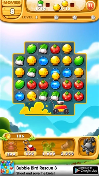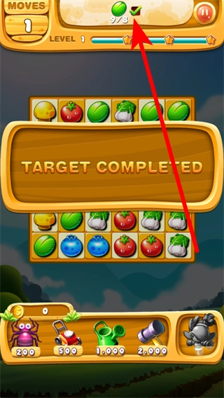 界面上方会显示剩余步数和需收集的农作物目标数量,需在剩余步数内尽可能多地消除目标农作物,从而达成收集目标。