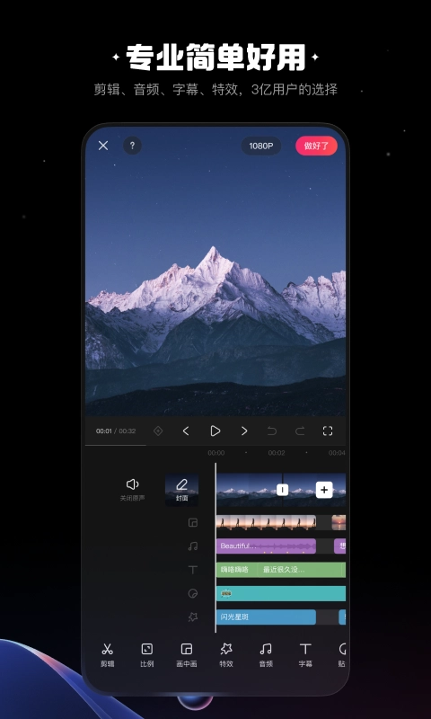 快影剪辑安卓版是一款实用的视频剪辑工具。它为用户配备了丰富的专业剪辑功能,让大家能轻松完成视频剪辑操作,还能便捷地导出和分享成品视频。此外,软件还具备智能大数据模式,可用来优化视频效果。有需要的用户不妨一试。