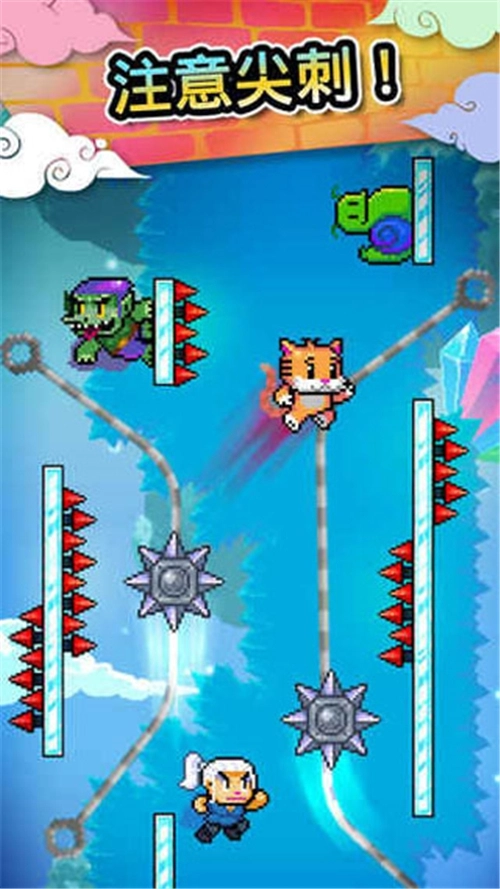 《爬墙者》中文版是一款创意十足的闯关冒险游戏,玩法规则和模式都十分简洁——玩家需要持续向上攀爬,途中会遇到不少需要克服的障碍,核心目标就是躲避这些阻碍,顺利进入下一关。大家可以充分发挥智慧,巧妙突破各个难点;关卡难度由简至繁逐步提升,高清像素风格的画面也能让玩家沉浸式感受游戏的乐趣。此外,游戏还设有丰富的奖励机制与不同主题的关卡,越往后解锁的皮肤数量也会越多。喜欢闯关挑战的朋友们,不妨来体验一番吧!