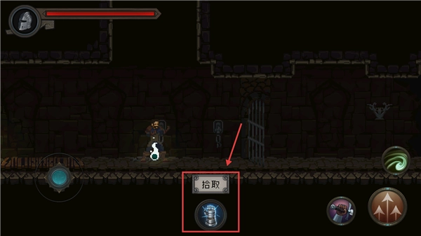 2、在战斗场景中靠近敌人掉落道具,点击【拾取】按钮获取物品,提升角色装备与战斗能力。