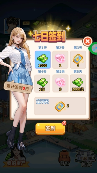 4、借助签到系统,玩家能够获取额外的资产奖励,还能获得可用于互动的道具。