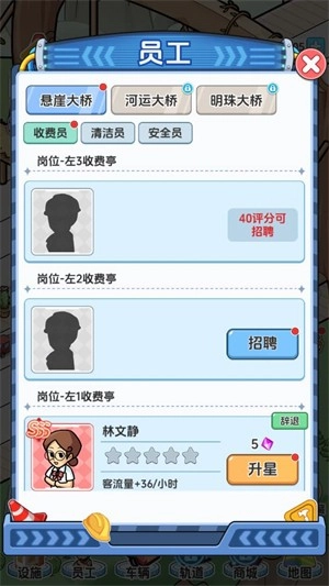 3、点击员工可以招募不同的员工来进行管理。