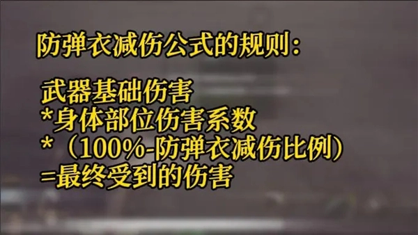 防弹衣减伤公式的计算规则为:武器基础伤害乘以身体部位伤害系数,再乘以(100%减去防弹衣减伤比例),结果即为最终受到的伤害。