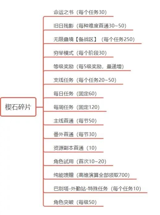 急需升级却体力告急?不妨看看楔石碎片——每日首次用40碎片就能兑换80体力!想抽卡但密钥不够?楔石碎片同样能帮你,150碎片即可兑换一个密钥!总而言之,楔石碎片既能满足你最迫切的基本需求,也能填补你难以抑制的抽卡冲动。它获取途径虽多,却依旧十分珍贵。下面为大家列出楔石碎片的获取途径及对应数量,大家可根据指引进行收集:
