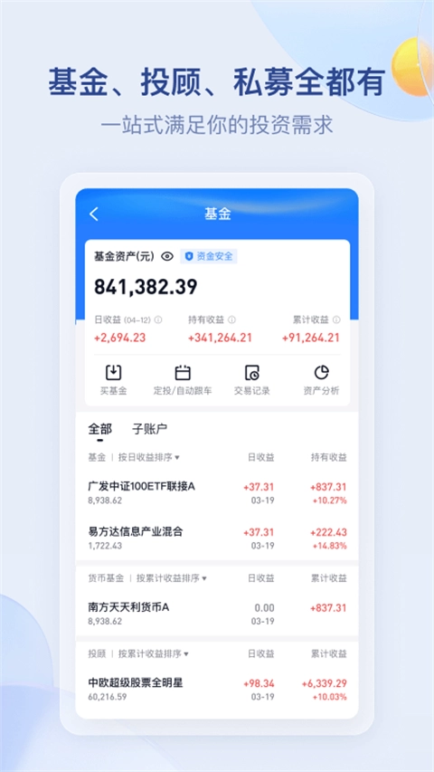 投资组合管理功能支持用户对名下持有的股票、基金等各类资产开展分类整理与统筹管理,助力用户直观掌握投资收益表现、风险状况及资产配置结构,从而更高效地优化调整投资策略。