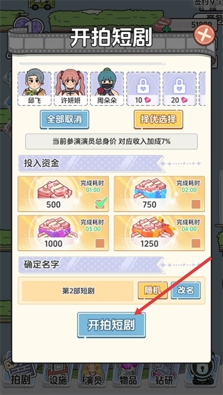 4、确认演员选择后,点击【开拍短剧】按钮,启动短剧拍摄。