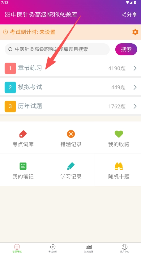1、在软件首页功能区找到并点击“章节练习”模块入口。