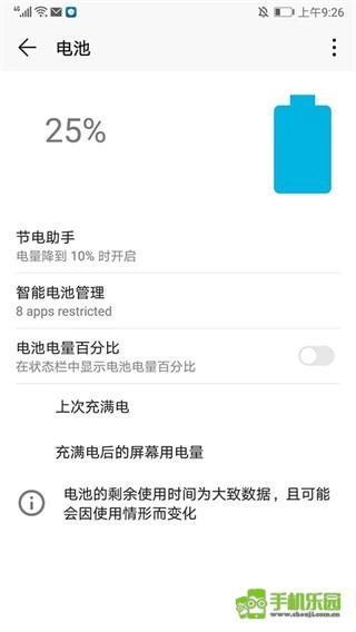 4、点击图中的【电池】图标,进入电池界面,可自行进行节电助手、智能电池管理、电池电量百分比等设置;