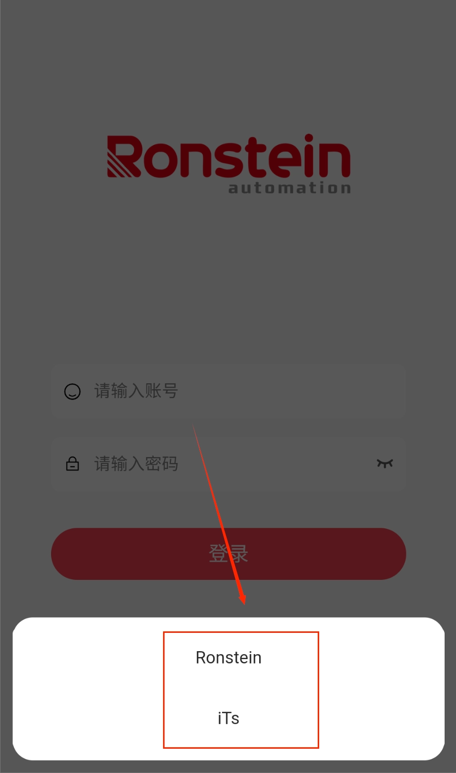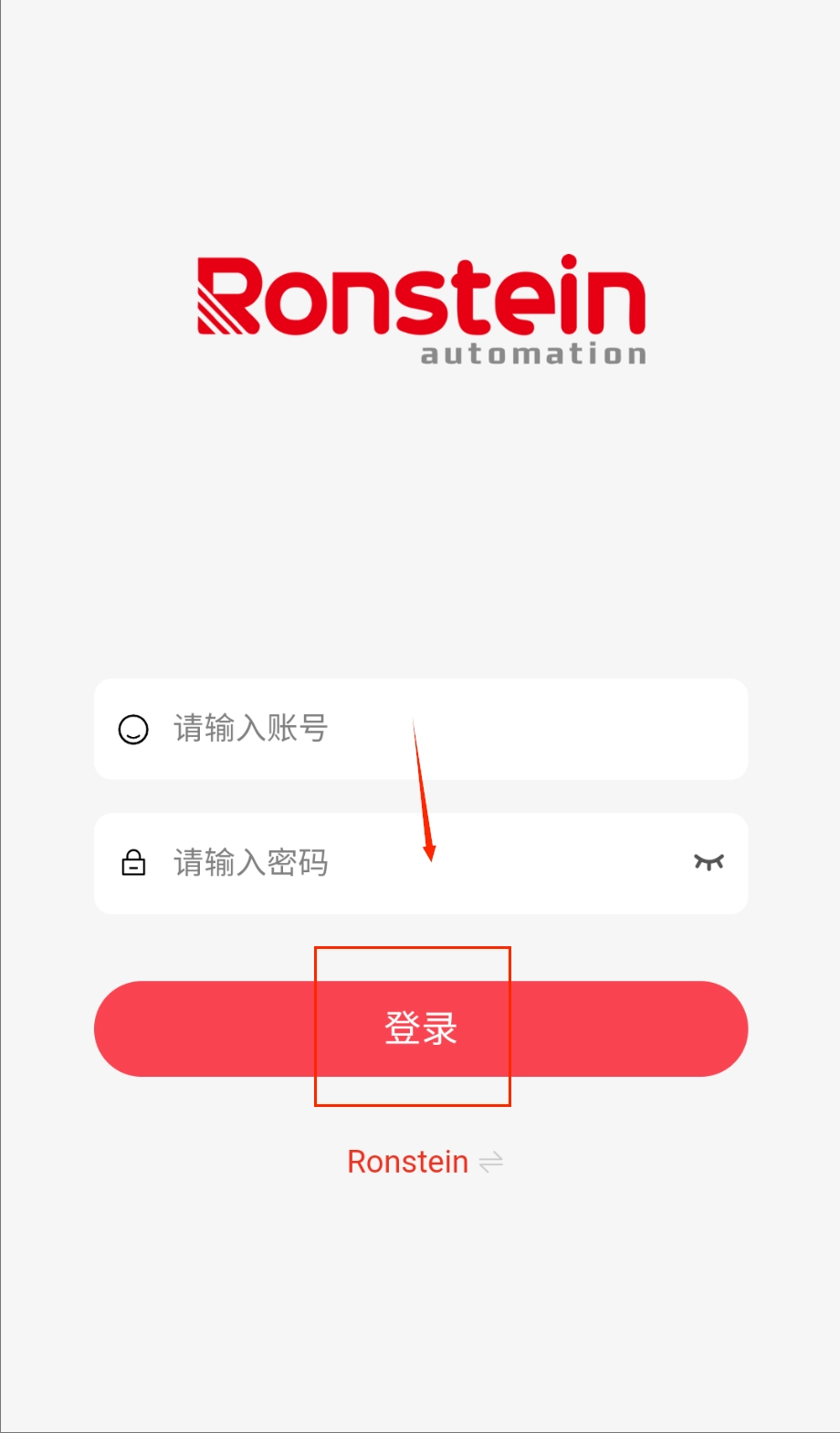 4、确认账号密码填写无误后,点击页面最下方那个醒目的红色“登录”按钮即可,底部还能看到白色的“Ronstein iTs”小字,整个登录流程两三步就能完成啦。