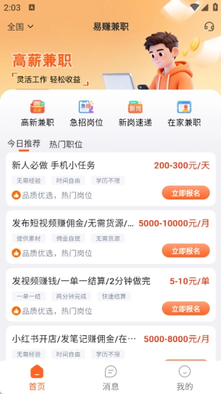 首页为你提供各类优质兼职岗位,方便你随时报名心仪的工作。