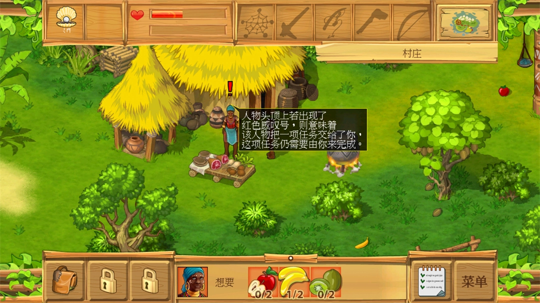 与斯蒂夫谈话把她带回营地——与艾米谈话——与斯蒂夫谈话——与麦克谈话(任务:斧子)——与尼科尔对话——与约翰对话——与奈克谈话——来到森林与法图对话(任务:1块猪肉),完成后学会打猎,并跟他回到部落——跟酋长谈话,(任务:1个蔬菜沙拉)——与博罗戈谈话,(任务:5个迷迭香)得到20个种子 ——与诺玛托谈话,以后可以跟他进行交易了——回到营地与艾米谈话,可以在营地种植了——与斯蒂夫聊天——与奈克谈话,(任务:2个萝卜、2个包菜、2个土豆)提交后再接到(任务:1个迷迭香),学会蔬菜沙拉——把蔬菜沙拉交给酋长得到斧子——与班图人谈话,以后可以在这边升级工具了——与法图谈话——与约翰对话——与艾米谈话(任务:椰子3个、橙子6个、西瓜3个)提交后学会“水果鸡尾酒”再接到(任务:1份水果鸡尾酒)——把斧子交给麦克并与其谈话,(任务:15个枯木)完成后打开车间功能,开始可以做箭枝了,再接到(任务:5支箭枝)——在神秘符号处跟约翰谈话——与托玛诺谈话,学会制药(任务:7 条蛇)——在部落上方与巫师谈话后,就可以杀蛇了——把蛇交给托玛诺得到100个珀尔再跟其谈话——与约翰谈话——回到部落与麦克对话,(任务:4个猪肉、4个迷迭香、4个树枝)完成后学会做牛排——做好3个牛排给尼科尔——与麦克谈话,第二部分完成。