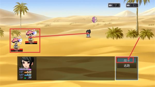 2、进入副本遇到【侏儒A】-【侏儒B】这类敌人时,点击【战斗】按钮即可开启对战,要留意自身HP-MP状态并合理安排作战策略。