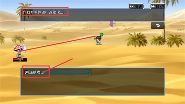 3、战斗时运用【连续攻击】技能,能对敌方单个目标发起多次打击,高效降低【侏儒B】这类敌人的生命值,从而加速战斗节奏。