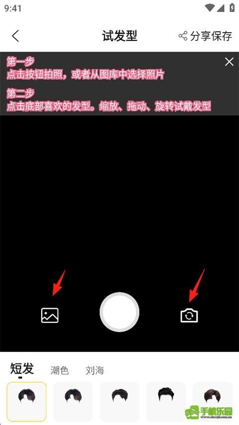 3、接着点击一款合适的发型进入,选择相机拍照或是从相册选取图片;
