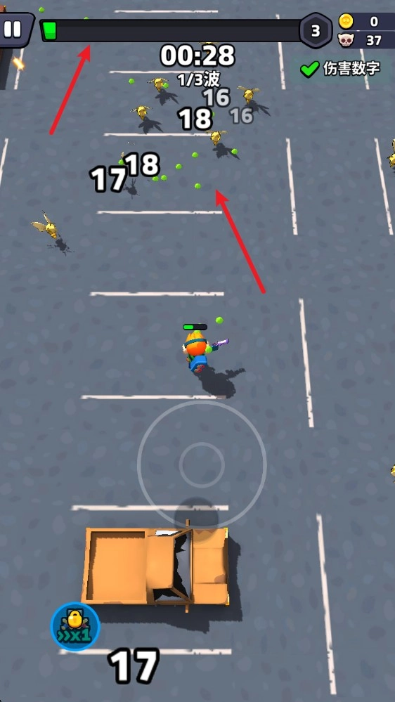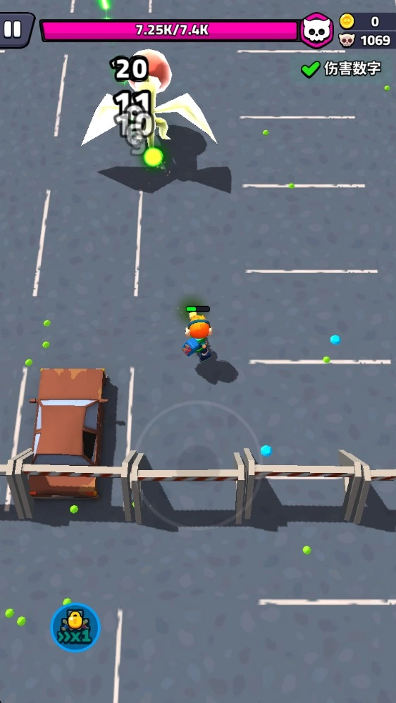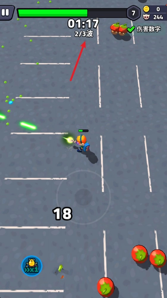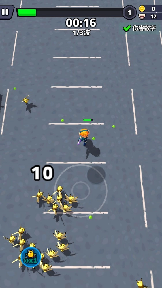 1、游戏中拖动摇杆即可控制移动,消灭周围出现的敌人