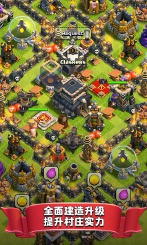 1.加入其他玩家的部族,或者独立建立部族,邀请好友加入,在实验室中升级部队、法术和攻城机,建立更强大的部队。