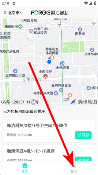 1、启动峰洁智卫应用,点击底部导航栏的“我的”选项,进入个人中心界面。