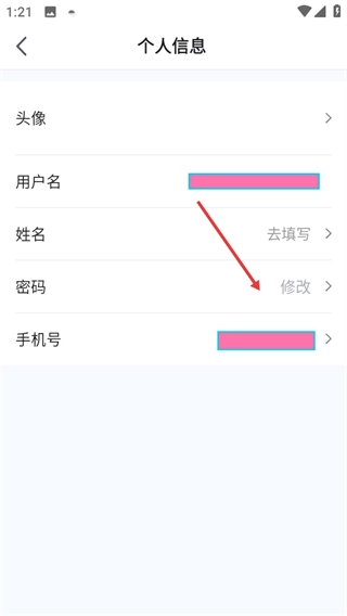 3、进入个人信息页面后,找到密码栏旁的修改按钮并点击,即可进入密码修改界面。