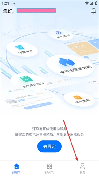 1、在好用气页面点击我的选项,进入个人中心页面。
