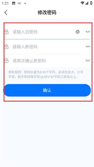 4、进入修改密码页面,填写所需的对应信息,随后点击确认按钮,即可完成密码修改操作。