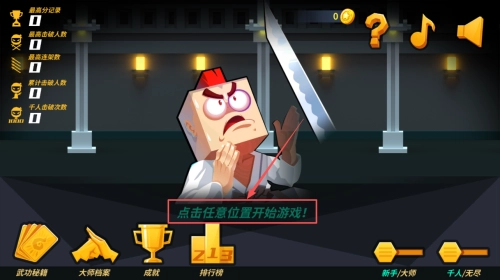 1、玩家操控角色参与空手接白刃挑战,借助简单的操作指令来躲避或接住迎面袭来的刀刃。