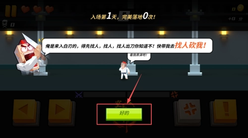 4、执行任务:根据新手提示,按住入白刃按钮,准备执行任务。