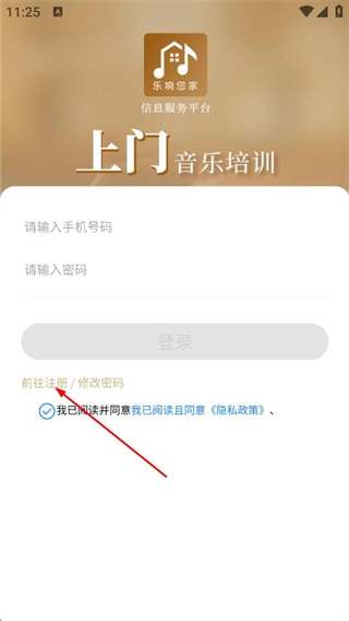 2、在乐响您家登录页面,点击前往注册/修改密码选项,进入注册/修改密码的操作页面。