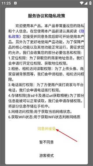 1、在服务协议和隐私政策弹窗中,点击同意并接受,进入乐响您家的登录页面。