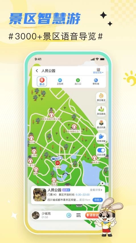 3、便捷操作体验:各功能设置操作简单直观,搜索景区、收听音频、查看导览等操作轻松上手,让用户专注于旅行本身,减少操作困扰。