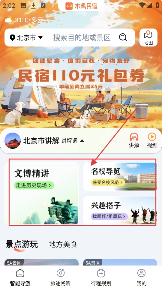 1、在首页能够选择【文博精讲】【名校导览】【兴趣搭子】等板块,进而进入到相应的主题页面。