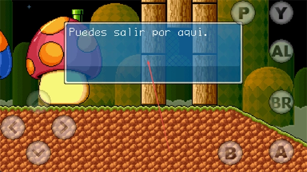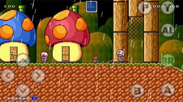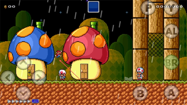 2、通过左侧方向键控制马里奥移动,右侧AB键分别对应跳跃、攻击等操作,先向蘑菇屋方向移动。