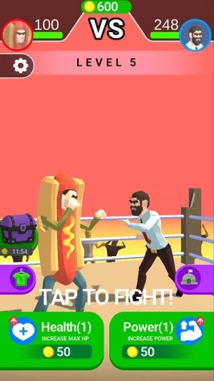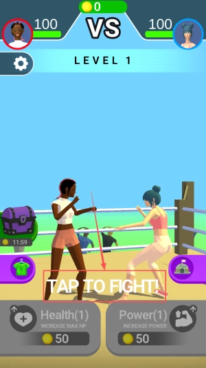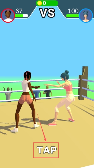 游戏卡通风格的休闲拳击对战游戏。玩家需操控角色灵活移动以躲避攻击,同时掌握快节奏的出拳技巧将对手击倒。游戏提供多样防护道具与角色选择,过程爽快直接,适合喜爱轻松对战与敏捷操作的玩家体验。1、开始游戏:点击“TAP TO FIGHT!”按钮,就能进入LEVEL 1关卡,这时候对战双方的初始血量均为100。