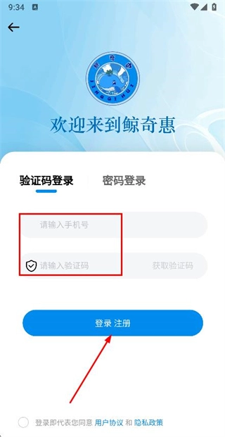 3、在登录页面填写手机号和验证码,勾选协议后,点击登录完成账号登录操作。