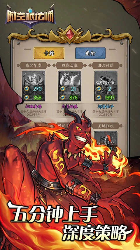 《时空旅法师》是一款策略卡牌对战游戏,巧妙融合了战棋与集换式卡牌的玩法,以“三分钟一局”的快节奏对战体验为核心特色,十分适合利用碎片化时间进行娱乐。玩家能够从六大各具特色的阵营中灵活挑选,以此构建专属卡组,并借助点数比拼、技能触发以及附魔搭配等方式,展开充满策略性的博弈较量。
