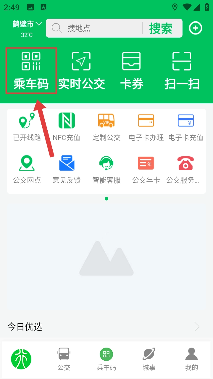 3、最后,用户完成登录后,点击指标方框内的【乘车码】就能进行支付。