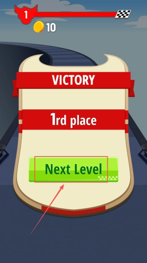 3、完成比赛:当界面上出现“10 VICTORY 1rd place”的显示时,就意味着已经取得了第一名。