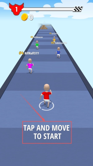 清新风格的跑酷逃生游戏。玩家需操控角色在赛道上快速奔跑,躲避后方愤怒公牛追击,并灵活利用场地道具拉开距离。操作依赖快速点击与即时反应,一旦被追上即告失败,适合喜爱紧张节奏与敏捷挑战的玩家体验。1、进入游戏:找到“TAP AND MOVE TO START”的提示,点击并滑动屏幕即可开始游戏。