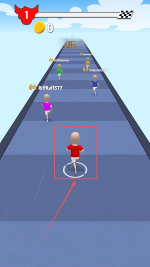 2、进行挑战:保持角色RiffRaff377在赛道上持续移动,避开障碍。
