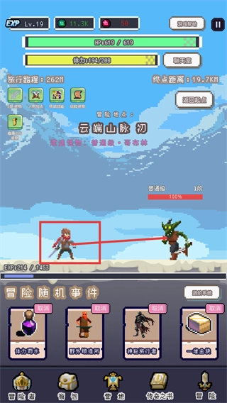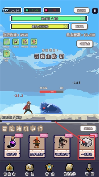 是一款聚焦冒险成长的作品,玩家将向着大陆最强者的目标开启无尽征程,在未知土地中探索秘境、收集传说武器,直面强劲副本首领的挑战。凭借无限属性与体力的优势,无需顾虑成长限制,尽情沉浸在热血冒险之中,感受多元化系统玩法带来的丰富体验。1、进入【云端山脉-初】场景后,注意查看【旅行路程-242M】和【终点距离-19.710】这两个信息,能借助界面功能来推进冒险进程。