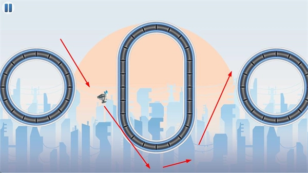 3、遇到环形轨道时,沿轨道路径移动,顺利通过特殊路段,向关卡终点前进。