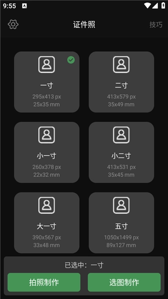1.在主页你就可以看到能够制作的所有证件照尺寸;