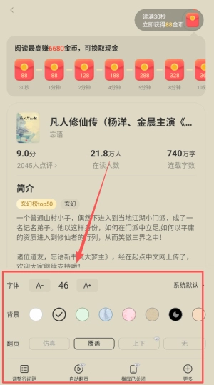 3、阅读时,用户能通过调整字体与背景设置来优化阅读体验,让每次阅读都更舒适,获得视觉上的愉悦感。