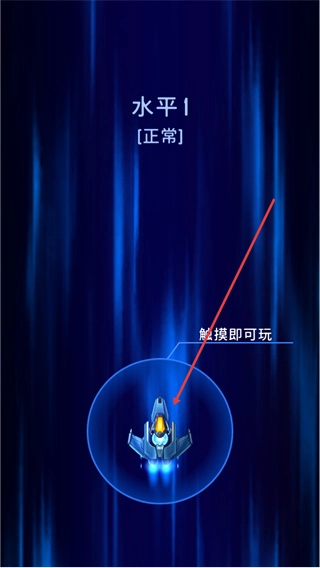 1、进入水平1正常关卡,按照界面中的触摸即可玩提示,点击飞船所在区域,即可开启本关卡的射击战斗流程。