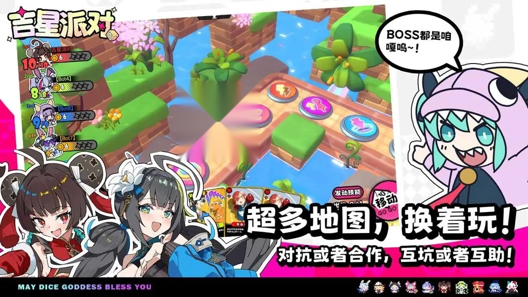 在吉星派对日服里,你能遇到许多日本玩家伙伴。这款游戏融合了卡牌、对战、派对与策略等多元玩法,游戏内的装备都以各式卡牌呈现,全程游玩都得巧妙搭配卡牌组合。你可以和好友组队,一同感受合作或对抗的趣味,还有更多精彩操作等你来解锁,快来尽情体验吧!