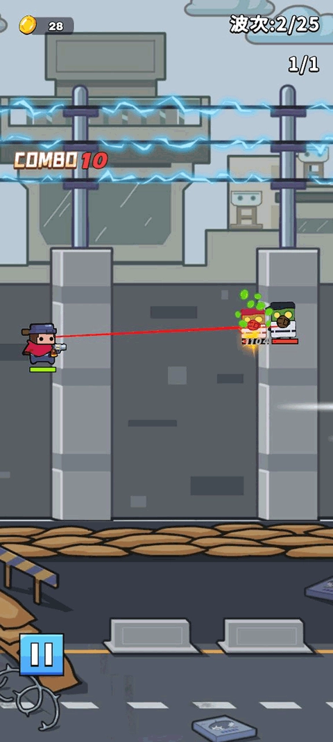 1、这是一款以轻松休闲为核心定位的射击游戏,操作难度很低,核心玩法非常简单——只需瞄准并射击关卡中出现的全部僵尸,即可顺利通过关卡。