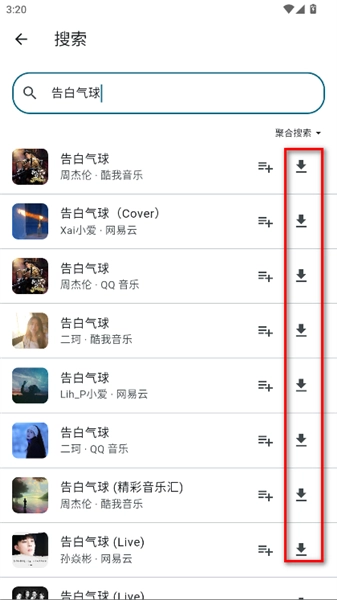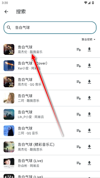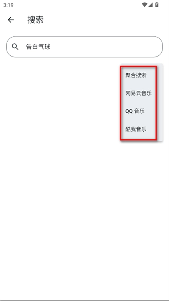 2.在搜索框输入歌曲、歌手、专辑的名称。