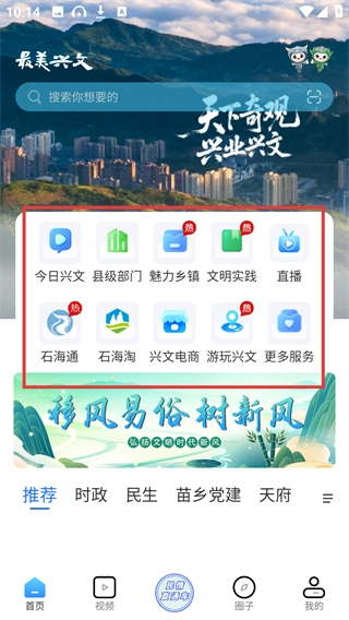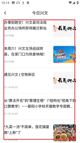 1、在首页找到并点击【今日兴文】选项,即可进入对应的资讯页面,浏览当地最新的各类动态信息。