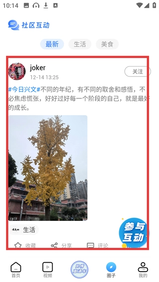 3、点击底部【圈子】选项进入社区互动页,选择目标动态点击,就能进入该动态的详情页啦。