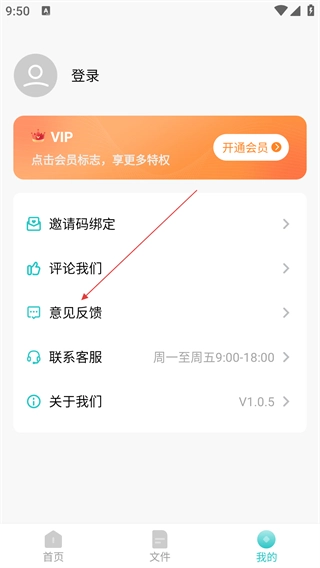 3、进入个人页面后,找到【意见反馈】选项并点击,即可进入反馈提交页面。