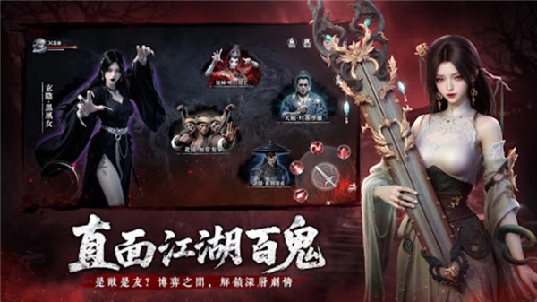 1、美术风格别具一格,将水墨武侠的写意韵味与暗黑怪诞的诡谲质感相融合,构建出极具冲击力的视觉氛围。